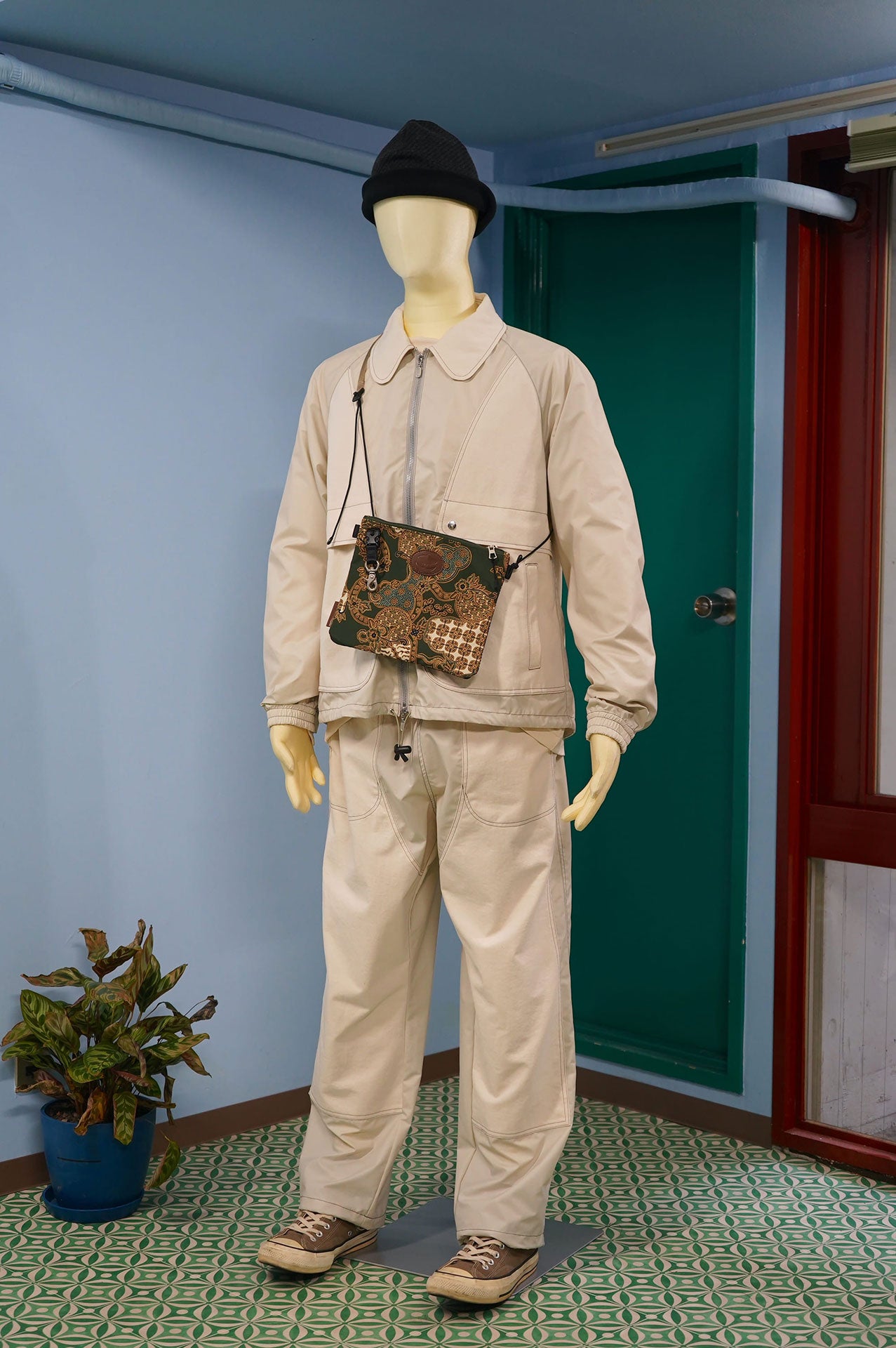 rajabrooke x master-piece sacoche. The main body fabric is an ox weave fabric made of 600D polyester thread both vertically and horizontally, and incorporates Japanese tastes and Southeast Asian culture, and has an inkjet sublimation transfer print of rajabrooke's original graphics, which are characterized by bold colors and patterns. Furthermore, the surface of the fabric is treated with a water-repellent coating to ensure water resistance. The included leather is made of waterproof tanned leather, and a reflective sheet is attached to the surface with a highly adhesive binder while retaining the texture of the leather to give it retroreflective function and to ensure safety at night. There is. A collaboration series that incorporates the worldview of rajabrooke, which interprets and develops various cultures from a unique perspective, into an item called a bag.