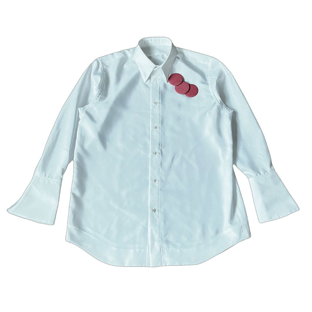 Inspired by shirts from the 1970s, when synthetic fibers such as polyester began to be used in clothing. It features fairly large cuffs, a sharply curved shirt collar, and a wide hem round.