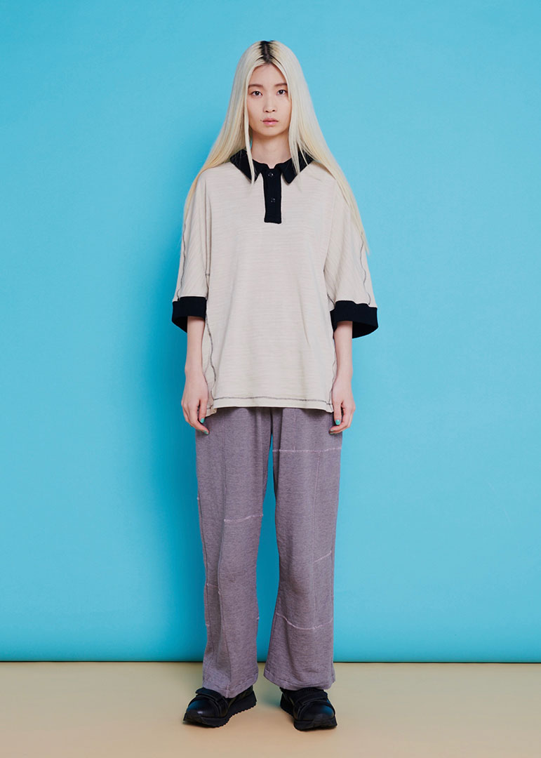 Rib collar shirt Beige